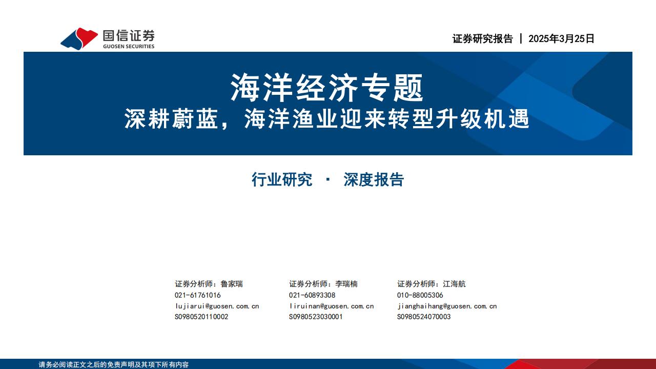 海洋經濟專題:深耕蔚藍,海洋漁業迎來轉型升級機遇-國信證券