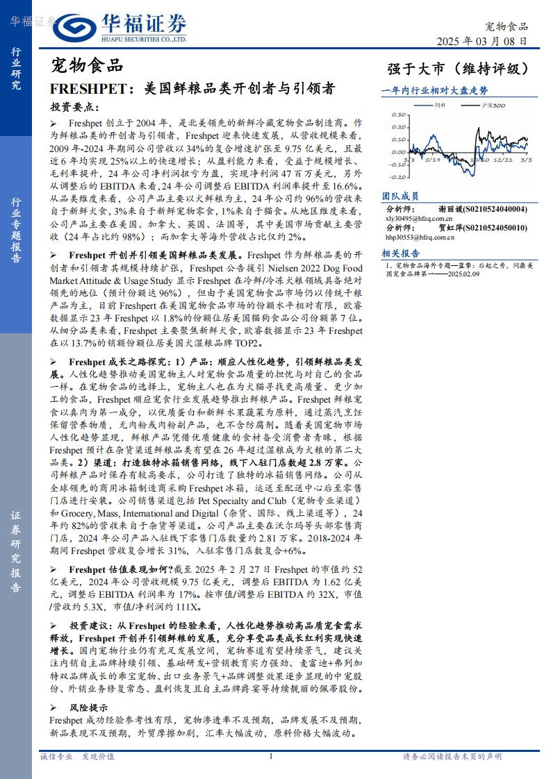 寵物食品行業專題報告:FRESHPET:美國鮮糧品類開創者與引領者-華福證券