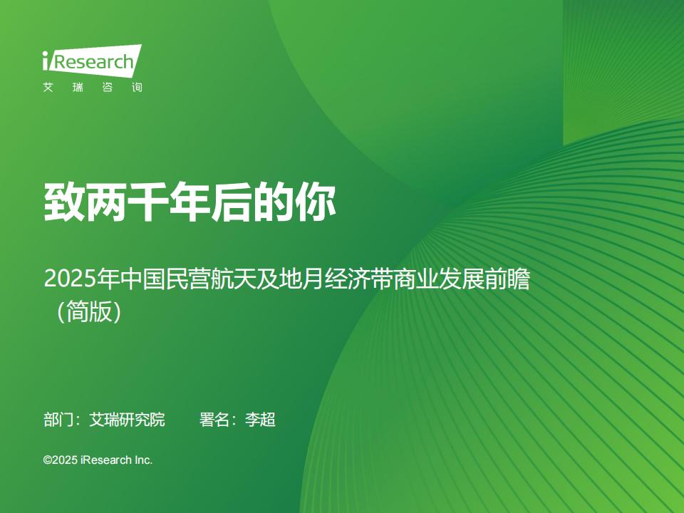 艾瑞咨詢:致兩千年后的你-2025年中國民營航天及地月經(jīng)濟帶發(fā)展前瞻(簡版)