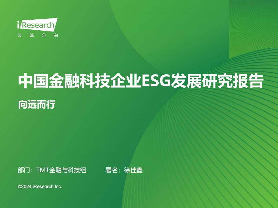 艾瑞咨詢:中國金融科技企業(yè)ESG發(fā)展研究報告
