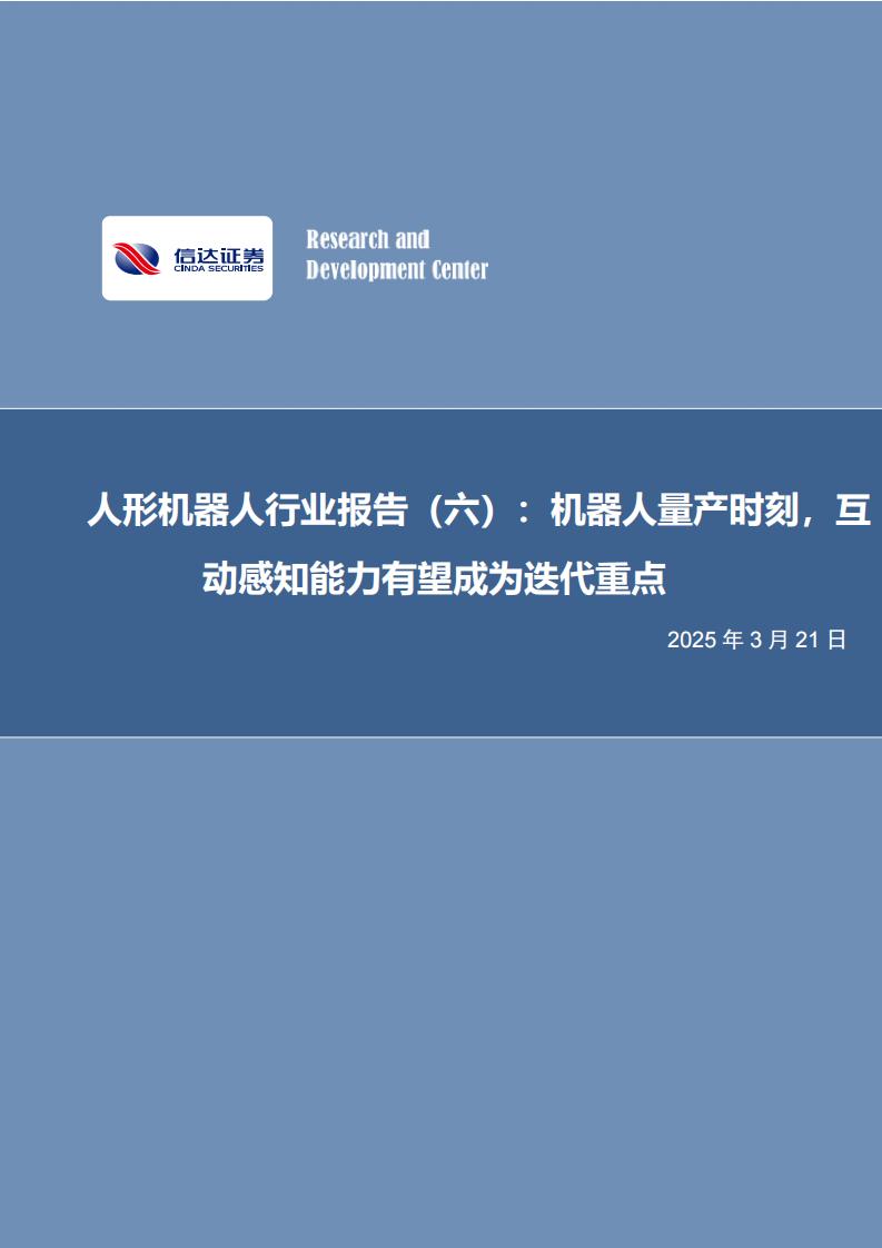 人形機器人行業報告(六):機器人量產時刻,互動感知能力有望成為迭代重點-信達證券