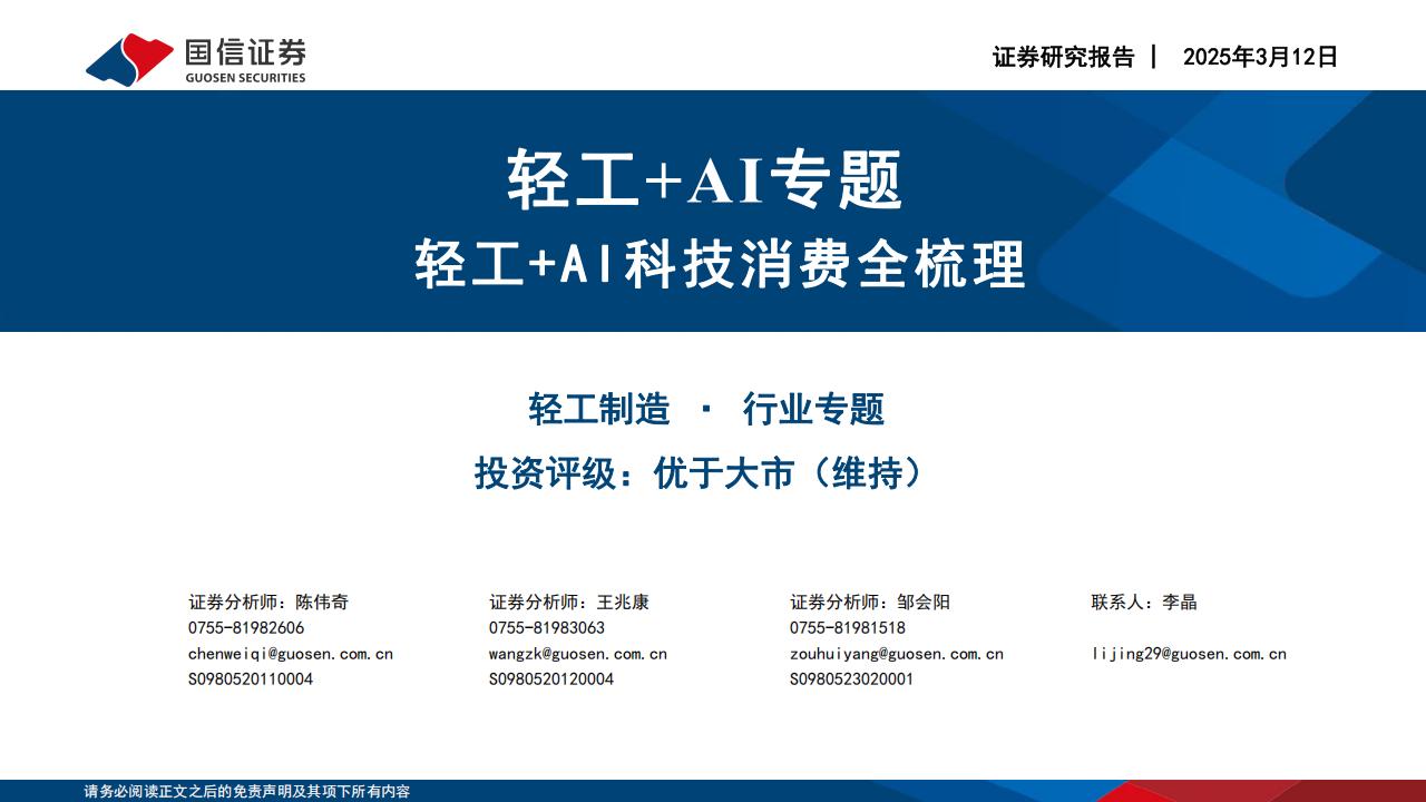 輕工+AI專題:輕工+AI科技消費全梳理-國信證券