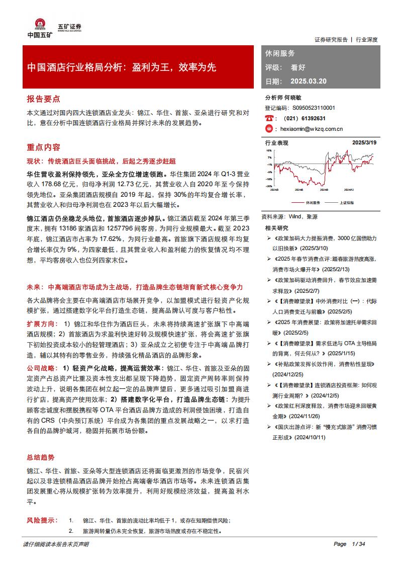 中國(guó)酒店行業(yè)格局分析:盈利為王,效率為先 -五礦證券