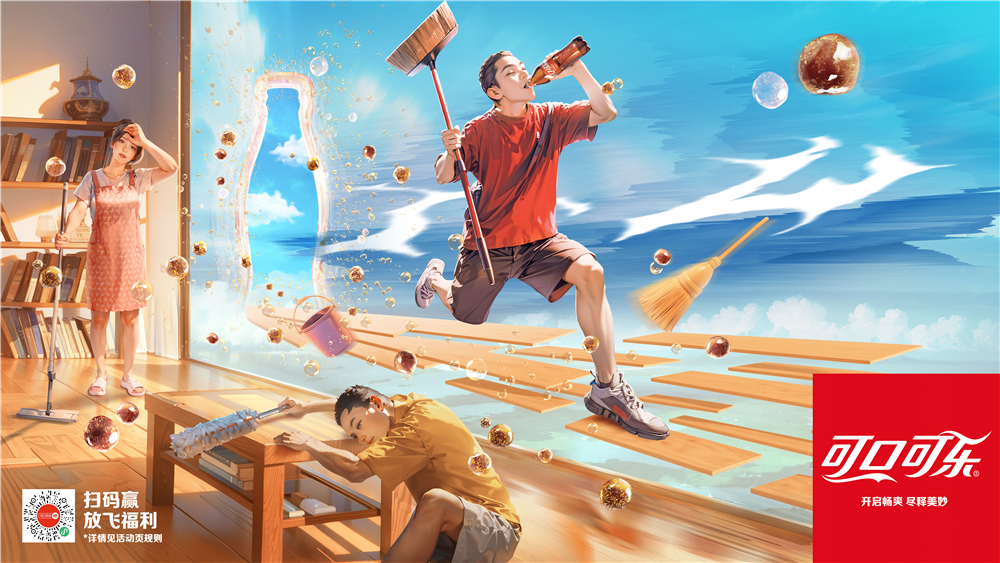 當(dāng)代年輕??臨著各種壓?,可?可樂希望為年輕?提供?質(zhì)量的休閑時刻,把這樣的?個休閑時刻定義為“放?時刻”。 ?AIGC技術(shù)是2023年的年度熱點(diǎn),為了借助時事熱點(diǎn)和當(dāng)下的新科技來提升消費(fèi)者體驗(yàn),可?可樂攜?100位站酷藝術(shù)家,結(jié)合AIGC技術(shù),構(gòu)想了不同場景可?可樂帶來的不同放?體驗(yàn),打造100副創(chuàng)作,旨在契合產(chǎn)品特性與品牌價(jià)值,構(gòu)建?喝可樂就放?的情緒價(jià)值,傳遞#放?時刻 開啟暢爽#的主題。