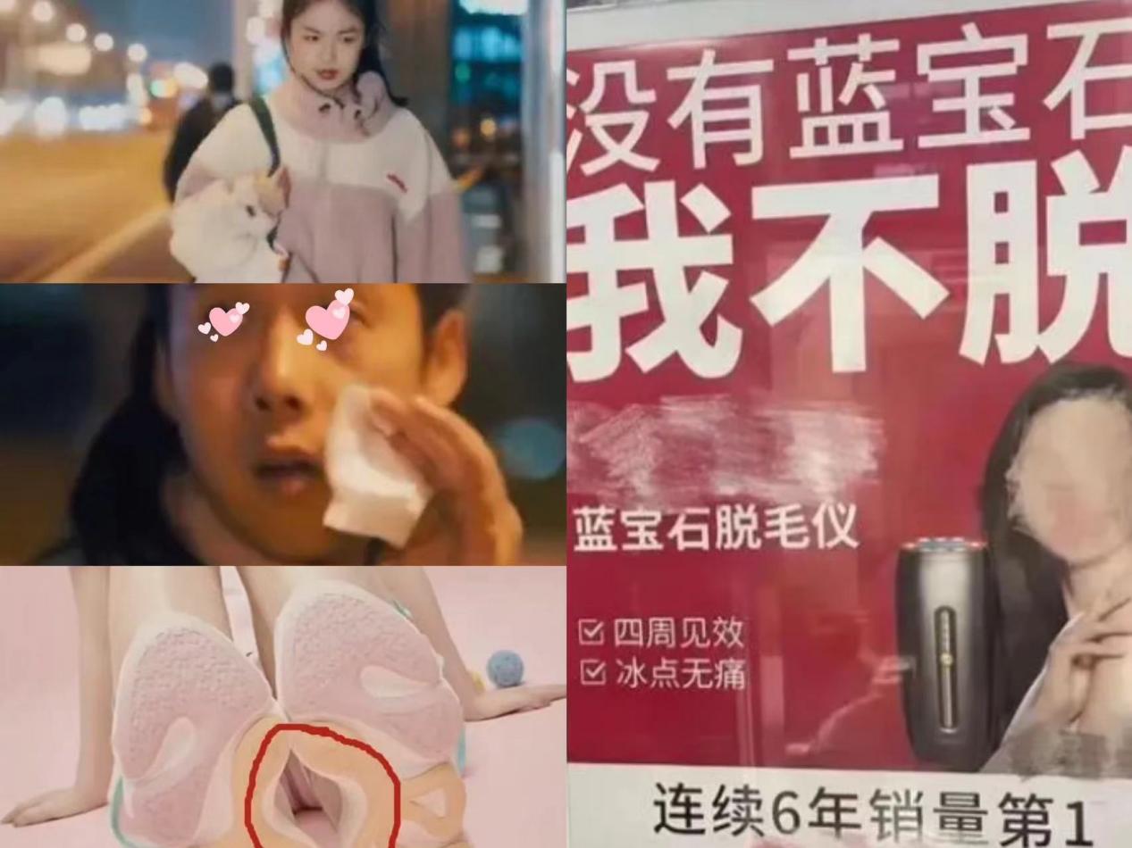 還記得上年某品牌的藍寶石脫毛儀廣告、某運動品牌擦邊球露出女性部位廣告、某衛生巾品牌涂了素顏嚇怕猥瑣男人廣告等等,翻車的擦邊球廣告帶著男性凝視。如果說以上是比較極端的廣告,還有一些舉辦女性圖書館、為女性發聲、定義女性的品牌廣告也在審美疲勞的邊緣。