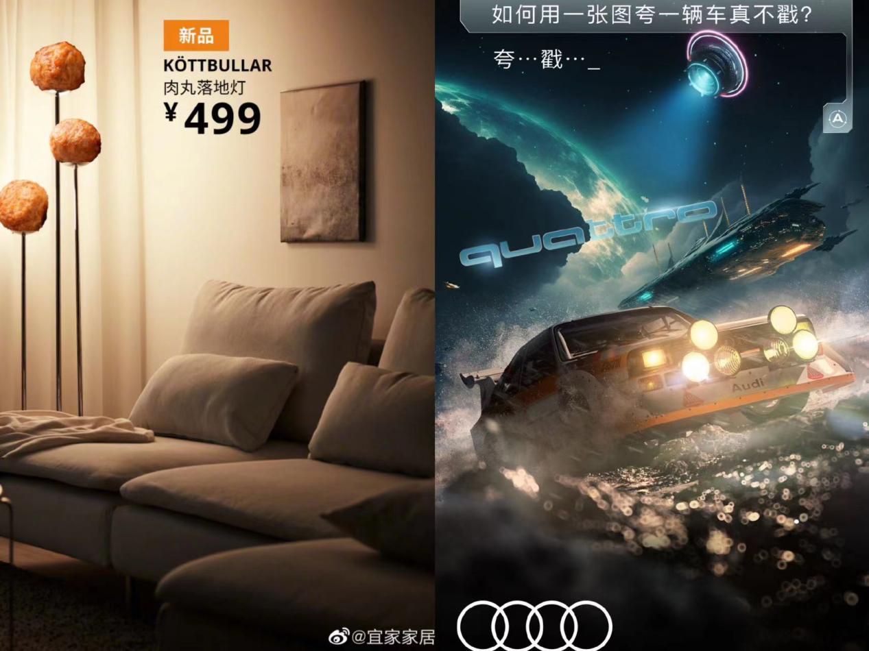 平衡創意的技巧,突出產品或服務的獨特賣點:在廣告中突出產品或服務的獨特賣點,可以讓觀眾更容易記住和關注廣告內容。例如,在宣傳一款新產品時,可以強調其與競爭對手的不同之處,或者突出其功能特性的獨特之處。像宜家家居最新制作的肉丸抱枕,肉丸臺燈,還有販賣肉丸的機器,讓整個購買家具的過程添加樂趣。再如奧迪愚人節廣告文案“如何用一張圖夸一輛車真不戳?AI的回答是“夸..戳”,可愛的回答讓人印象深刻。