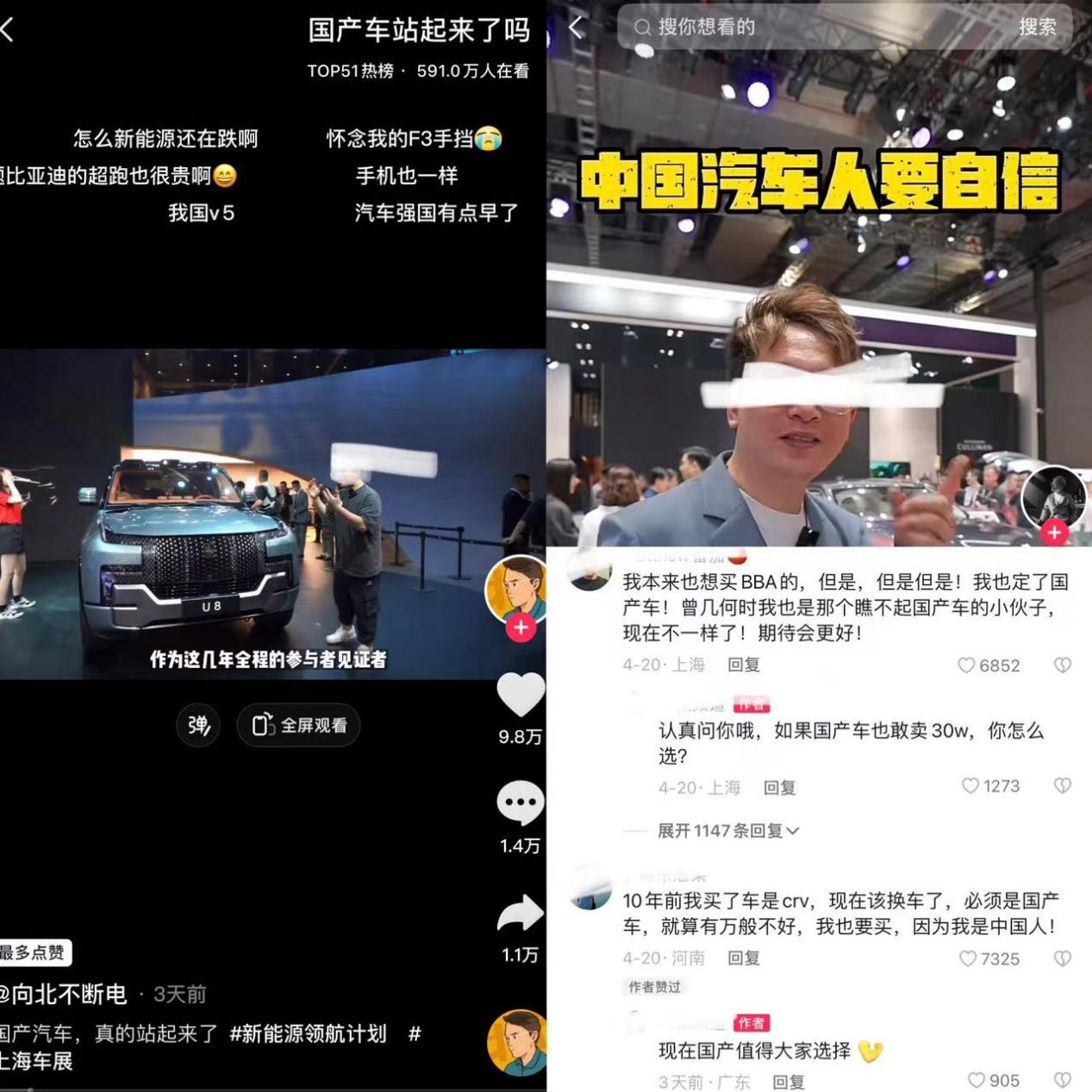 亮點一:車展除了國產電動品牌的高歌,還有一道亮麗的風景不是車模,而是一個個架起攝像機以及滔滔不絕解說汽車的博主。這些UP主再次緊抓本次國際車展的流量大池塘,希望通過激情、熱情和專業的解說,積攢熱度。可見,這個市場的玩法依舊是短視頻和博主的完美結合,就像每個消費者都習慣了這種玩法,短視頻營銷逐漸穩定。