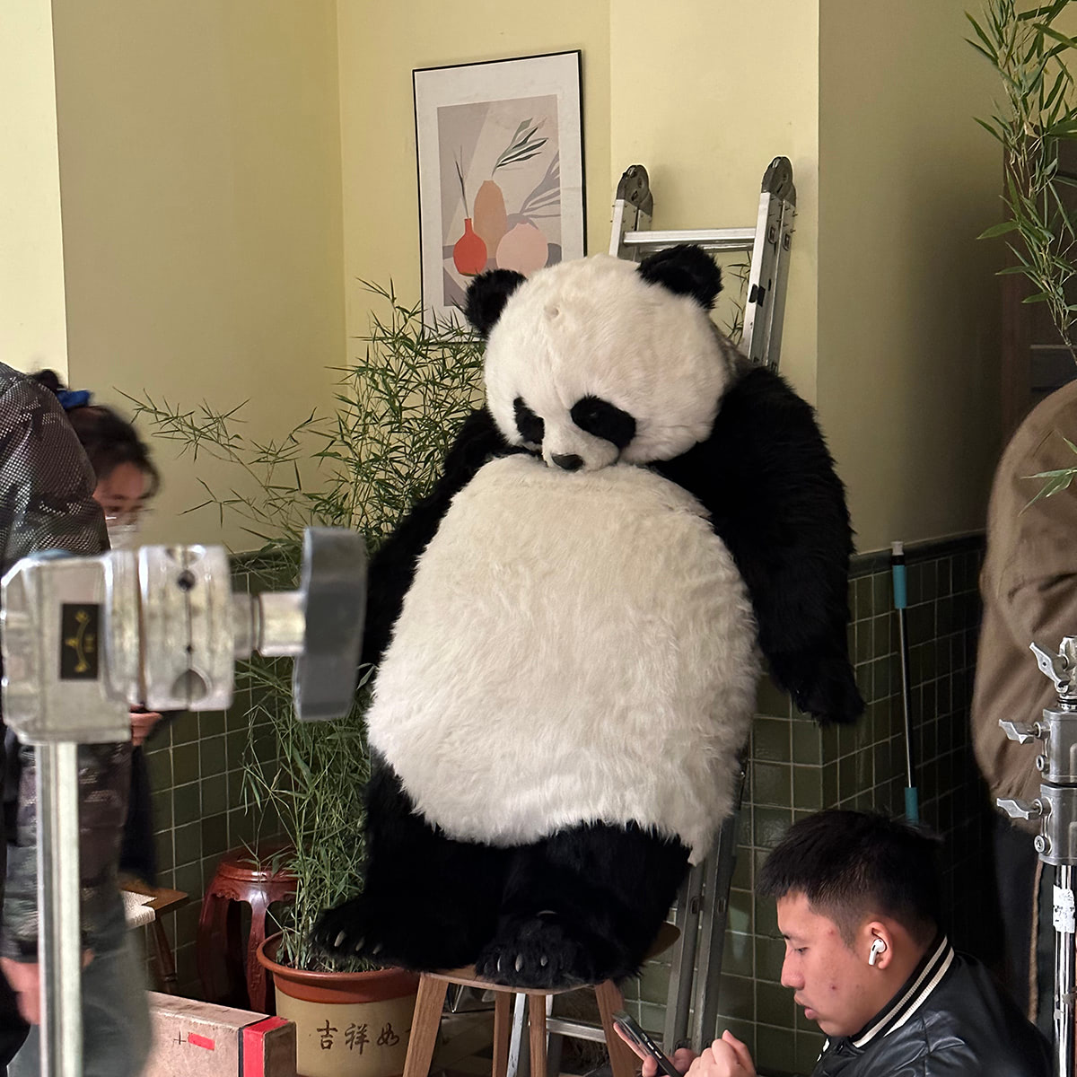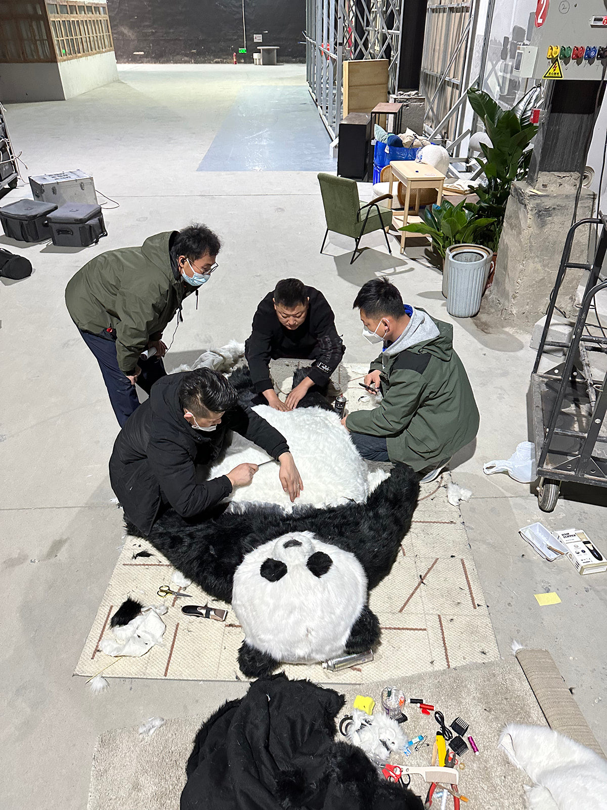 由于拍攝過程會(huì)涉及許多動(dòng)作,包括握持器物等手部細(xì)節(jié)等,普通的熊貓戲服無法完成任務(wù),必須為腳本量身打造一只新的熊貓。