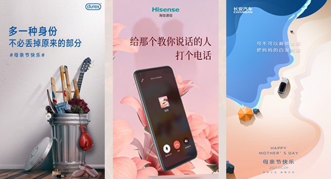 母親節與情感營銷結合是最貼切的方式,但是情感營銷萬一使用不得當,就容易使得營銷同質化,陷入自我感動的怪圈。比如一些品牌在傳遞母親不只有柴米油鹽、照顧孩子和變美,并且在營銷中傳遞一條信息,如買了這個品牌產品,母親就擁有了自由、獨立和美麗的生活。此類營銷方式在于自嗨和自我感動,沒有付諸于實際的情感觸動和心智滲透。也有的文案十分平淡,像在禱告和說教。