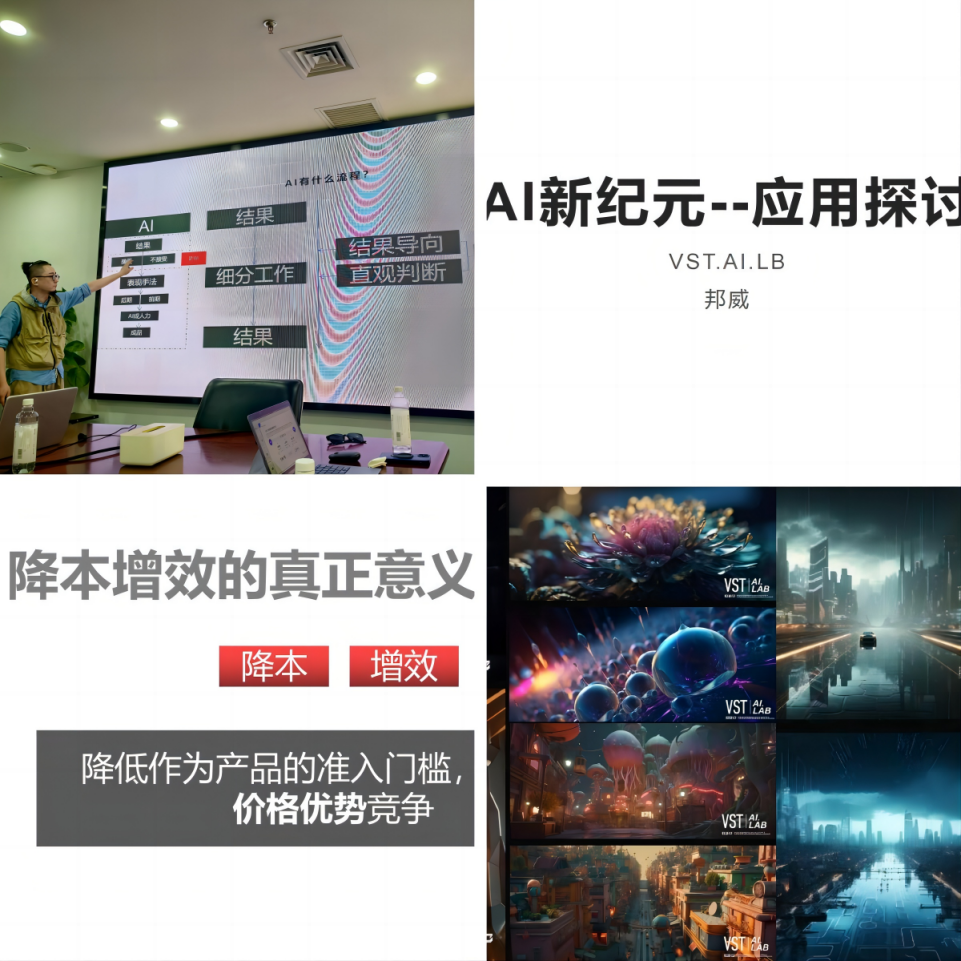 治柱講AI創(chuàng)始人莊治柱,現(xiàn)場分享和展示了“AIGC+”訓練營前四期學員們制作的商業(yè)案例和學習成果。