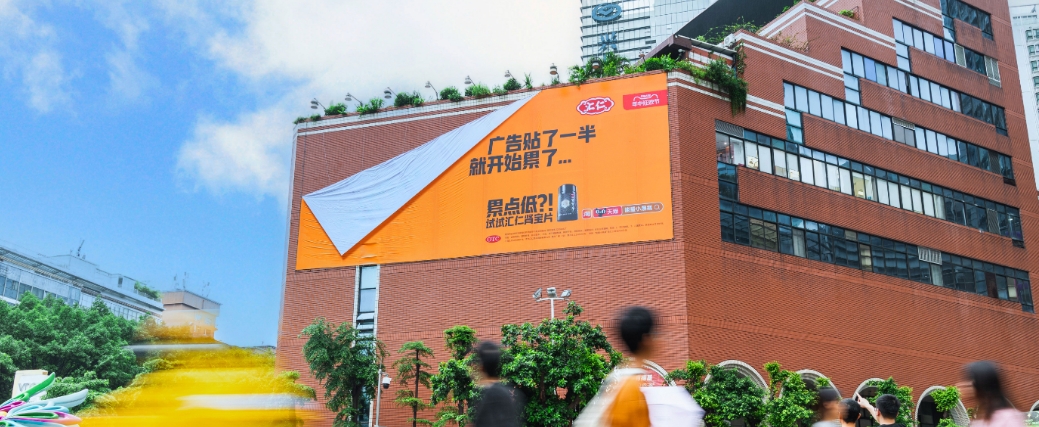 還有匯仁藥業這張貼了一半的海報,它通過將廣告設計為“貼了一半”,給人一種“尚未完成”的視覺效果,從而引發路人的好奇心和關注。這種廣告形式成功地打破了常規平面的廣告設計,利用不對稱、未完成的形式來吸引注意力。