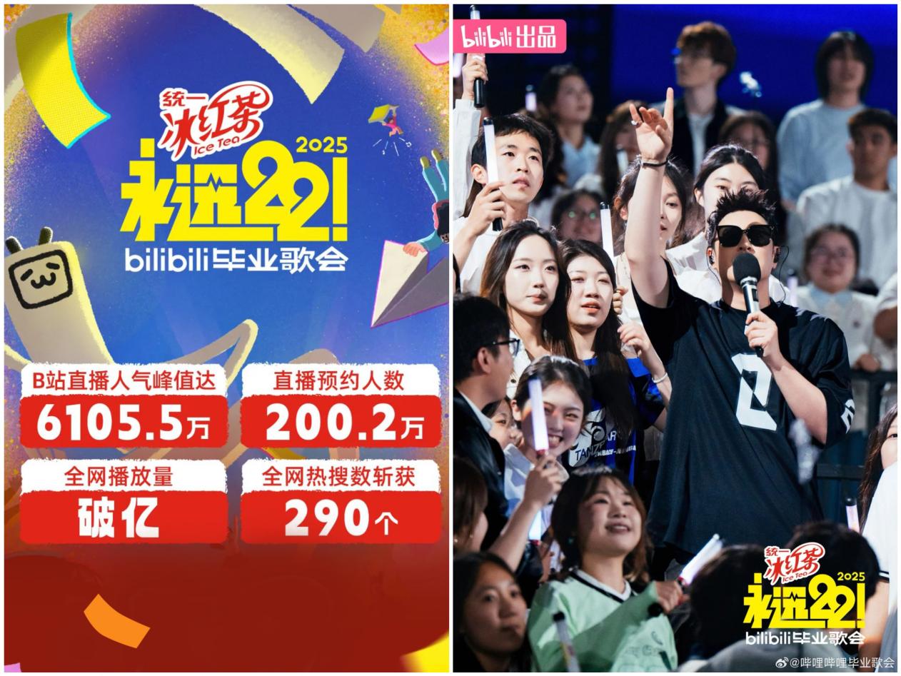 B 站畢業(yè)歌會用 “儀式感” 構(gòu)建社區(qū)情感地標(biāo),強化社交平臺調(diào)性。首先是明星與素人共創(chuàng)場景,多名知名藝人與千名高校畢業(yè)生同臺演出,又通過素人參與(36 所高校千人樂隊)增強用戶代入感;其次是互動功能深化參與,電子同學(xué)錄、多視角直播、UP 主陪看等設(shè)計,讓用戶從 “觀眾” 變?yōu)?“參與者”形成 “云畢業(yè)” 儀式感。該平臺每年迭代玩法形成 “養(yǎng)成式陪伴”,用戶評論 “連續(xù)六年看歌會,B 站陪我從大一到工作”,印證社區(qū)情感紐帶的形成。不過,內(nèi)容深度受制于娛樂化定位,部分用戶反饋 “歌會更像演唱會,缺乏對畢業(yè)焦慮的真實探討”;明星效應(yīng)雖帶來流量,但也稀釋了 “素人主角” 的平臺調(diào)性,有用戶評論 “鏡頭全給藝人,高校樂隊鏡頭不足 10 秒”。