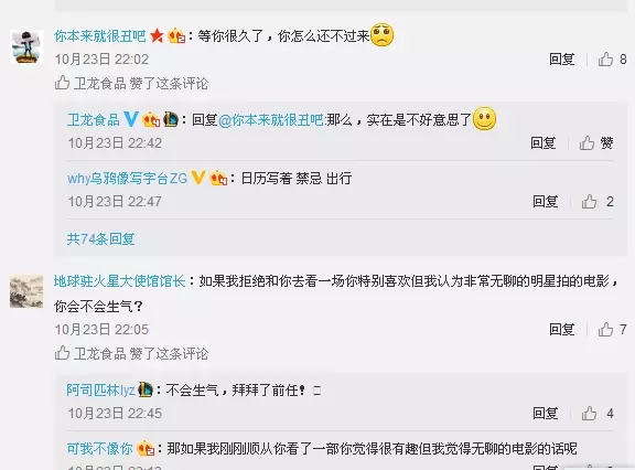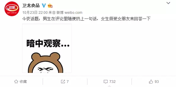 所以衛龍沒事就搞搞互動。比如今夜話題:男生在評論里隨便扔上一句話,女生假裝女朋友來回答一下 ?