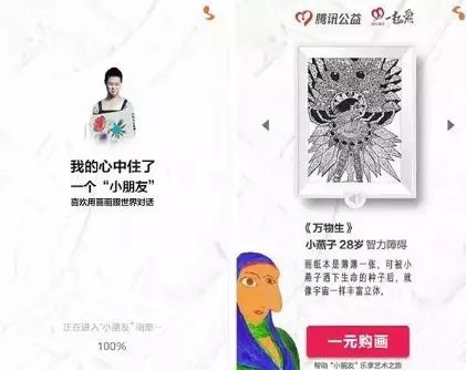 其實,這是一場由騰訊公益策劃的募捐活動,憑借《小朋友畫廊》這個H5,“一元購圖關愛自閉癥兒童”的行動立即在微信朋友圈炸開了鍋。